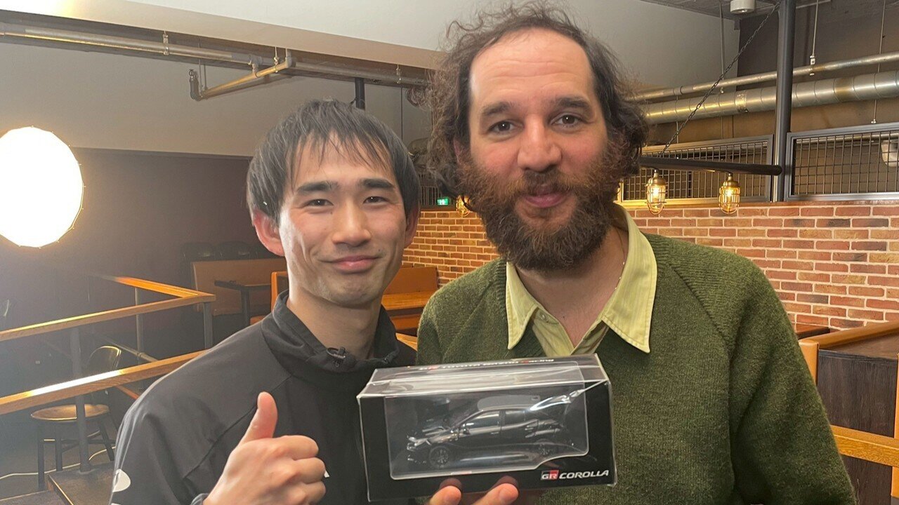 最後はクルマをドライブするゲームでの対決。選んだクルマは、ティモシーさんがGR86、川口選手がプリウス。抜きつ抜かれつのレースは、最後まで好勝負を繰り広げた。