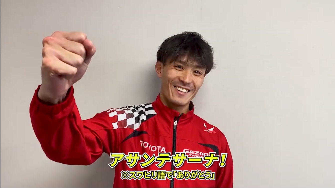 待ち望まれていた貴元選手のWRC優勝に、縁のあるトヨタアスリートからも祝福のメッセージが届けられた。合宿でケニアを何度も訪れたという陸上長距離部の服部勇馬選手は「勇気と希望を与えてくれて、アサンテサーナ!(スワヒリ語で「ありがとう」)」と伝えた。